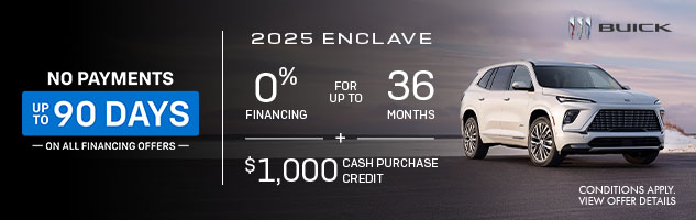 * Every reasonable effort is made to ensure the accuracy of the information listed above. Vehicle pricing, incentives, options (including standard equipment), and technical specifications listed is for the 2025 Buick Enclave Sport Touring may not match the exact vehicle displayed. Please confirm with a sales representative the accuracy of this information.